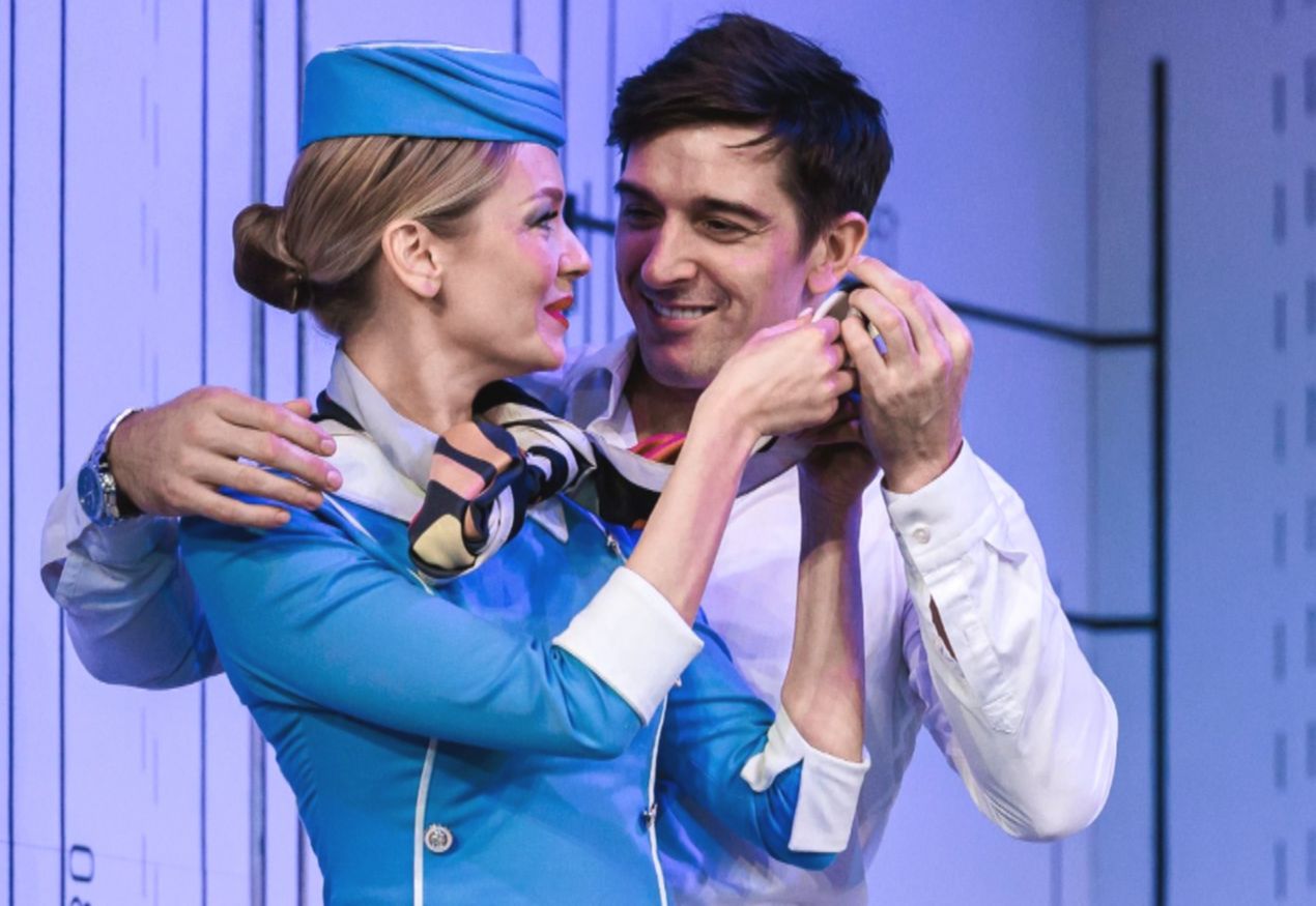 А в спектакле «Мы летим»- очаровывает зрителей в образе невесты парижского ловеласа. Похоже, роман с театром у неё в самом разгаре, и гастроли по всей стране — лучшее тому подтверждение.