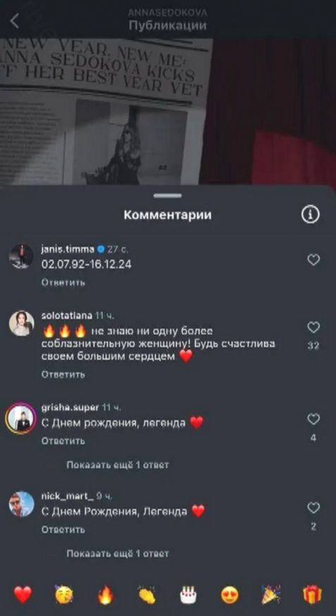 Седокова начала делиться в соцсетях теплыми словами о Тимме: