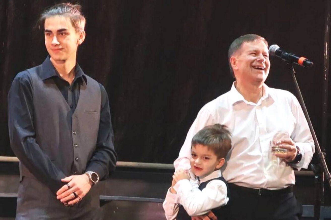 И все же, актер с гордостью показал сыновей всему залу гостей, собравшихся на его 70-летний юбилей.