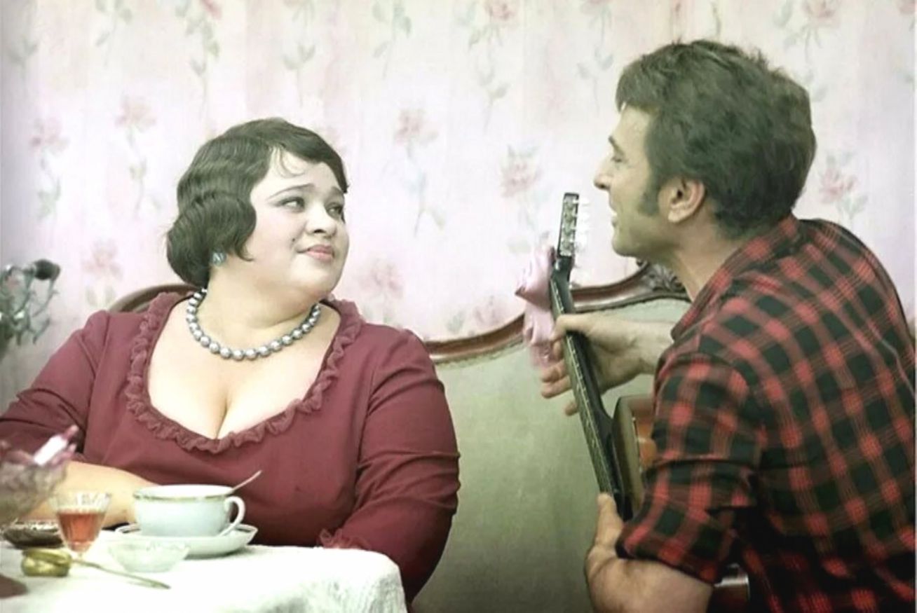 А когда выяснилось, что роскошное платье «мадам Грицацуевой» не сходится на полной фигуре актрисы, костюмеры нашли гениально простой выход. Просто распороли спинку и прикрыли прореху ажурной шалью.