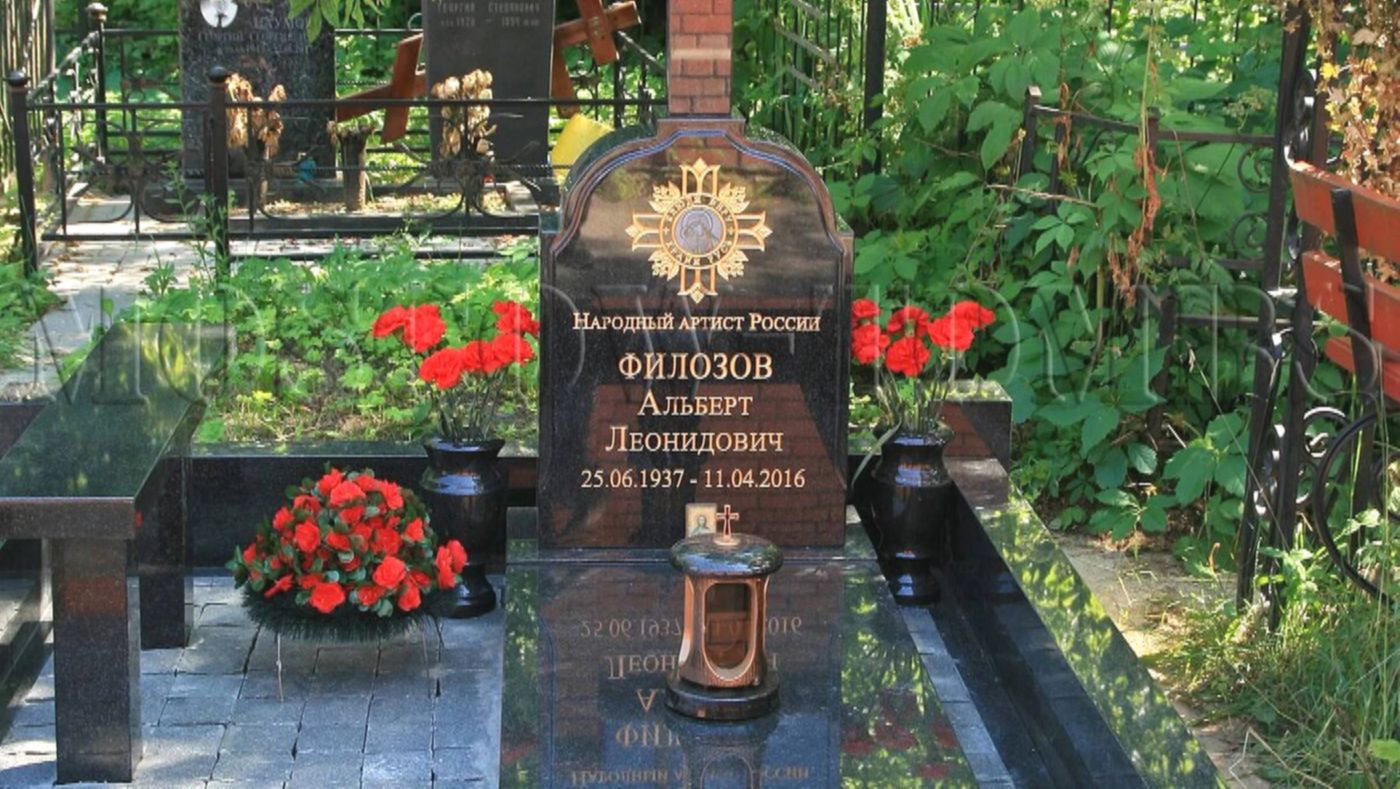 Прощание с актёром состоялось в «Школе современной пьесы», а похоронили его на Ваганьковском кладбище. Вдова Альберта Филозова не хотела устанавливать памятник на могиле мужа, отказываясь от помощи руководства театра. В результате монумент всё же был установлен — но чьими силами, до сих пор неизвестно.